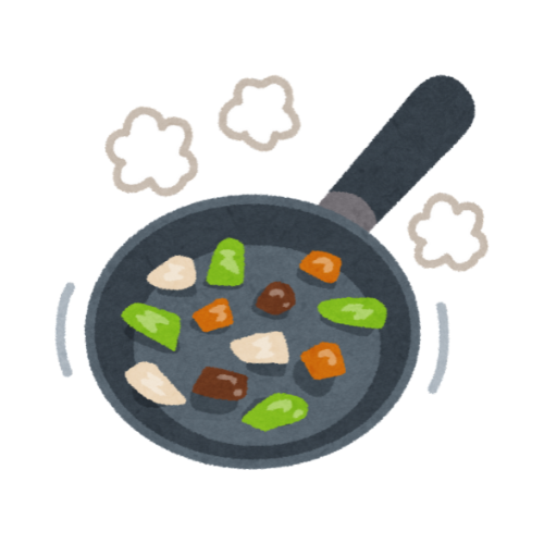 ミニキッチンはとにかく狭いのでフライパン1つで完了するものにします。